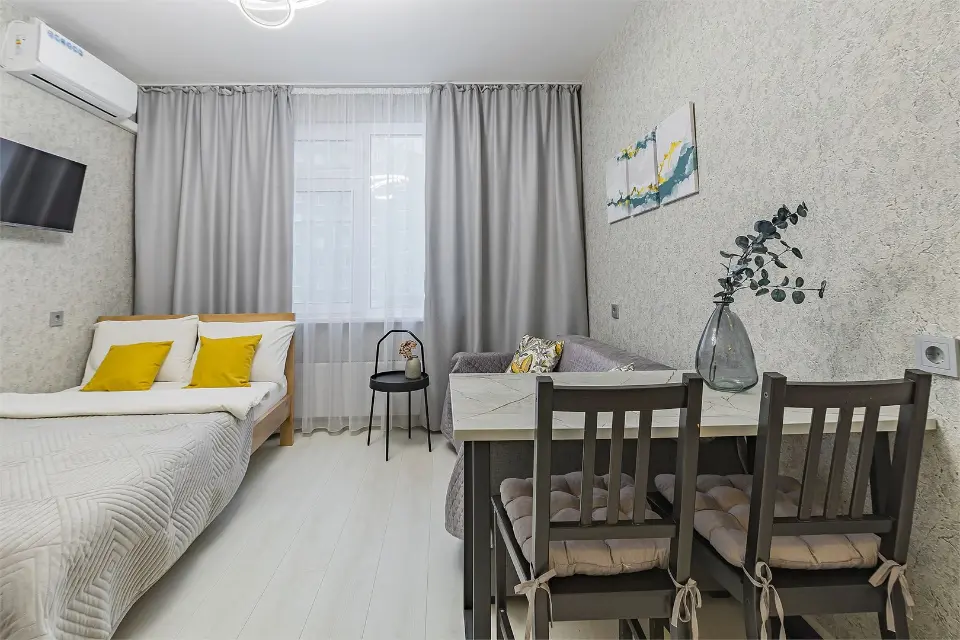 ПОЛУТОРАСПАЛЬНАЯ КРОВАТЬ + РАСКЛАДНОЙ ДИВАН✨ ДО 3 ГОСТЕЙ ✔️ Комфортная студия в современном ЖК "Бурнаковский" недалеко от озера. Расположена в районе с хорошо развитой инфраструктурой. В пешей доступности магазины, кафе, аптеки, продуктовый рынок, обустроенная прогулочная зона у озера. ✔️ Идеально подходит как для небольших поездок, так и для длительных командировок. Почему этот вариант от компании "Стрелка - гостевые квартиры" лучший для Вас⭐: ✅ Самостоятельное заселение/выезд в удобное для Вас время (установлен электронный замок); ✅ Кондиционер; ✅ Мини-кухня с плитой, холодильником, чайником и микроволновкой; ✅ Посуда и кухонные принадлежности для приготовления и приема пищи; ✅ Телевизор с плоским экраном, Wi-Fi; ✅ Чистое и отглаженное постельное белье и полотенца из собственной прачечной для каждого гостя; ✅ Фен, мыло, шампунь, гель для душа; ✅ Стиральная машина, а также все для стирки и глажки белья; ✅ Допускается проживание с домашними животными (по предварительному согласованию за дополнительную плату); ✅ Бесплатная парковка во дворе. Платная охраняемая парковка в пешей доступности; ✅ Хорошая транспортная доступность в любую часть города до любого предприятия и к достопримечательностям. Отличный вариант для комфортного пребывания в городе! ✅ У нас высокие стандарты уборки! Гарантируем чистоту и порядок. При длительном проживании промежуточные уборки и замена постельного белья и полотенец. ★Предоставляем полный пакет отчетных документов. ★Работаем с юридическими лицами и организациями. ★Оплата любым удобным способом. ПРАВИЛА ПРОЖИВАНИЯ: ✨При регистрации необходимо предоставить паспорт и подписать электронный договор. ✨Время заезда после 14:00, выезда до 11:00. Ранний заезд и поздний выезд возможен по предварительному согласованию ✨Перед заездом в квартиру взимается залог, возвращается в день выезда по результатам проверки квартиры и при условии соблюдения правил проживания ⛔Курение, в том числе электронных сигарет и кальяна, в помещении запрещено! ⛔Только для тихого проживания, мероприятия, вечеринки и громкие посиделки запрещены! ⭐Подapитe ceбe комфортный oтдыx со вcеми удобcтвaми в Апaртамeнтаx "Стрелка"!⭐ ▸ 200 метров до продуктового магазина "Ашан", Бурнаковского продуктового рынка, кафе "Сели-съели", пиццерии "ПиццаФабрика"; ▸ 700 метров до продуктового магазина "Перекресток"; ▸4 км (10 мин на авто) до ЖД вокзала, ТРЦ "Седьмое небо" (магазины, кафе, кинотеатр, фудкорт), Нижегородской ярмарки, Нижегородского цирка, Футбольного Стадиона, Стрелки (слияния Оки и Волги) и Собора Александра Невского; ▸7 км до исторического центра города (15 минут на авто); ▸6 км до Сормовского парка и Зоопарка Лимпопо (15 минут на авто); ▸ 10 км до ТЦ «Океанис», Аквапарка и парка Швейцария (20 мин на авто); ✈️ От аэропорта Стригино – 40 минут.