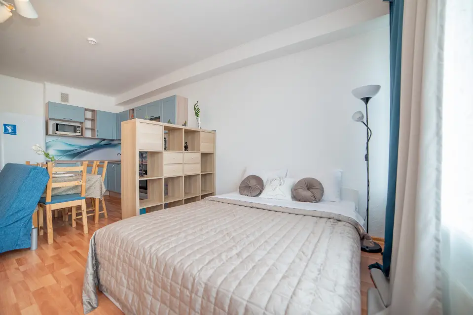 Компания BeGuest предлагает квартиру-студию посуточно в Екатеринбурге у метро Геологическая по адресу Белинского 108 (16 мин до метро). Рассчитана на размещение до 4х гостей и оснащена одной двуспальной кроватью и диваном.