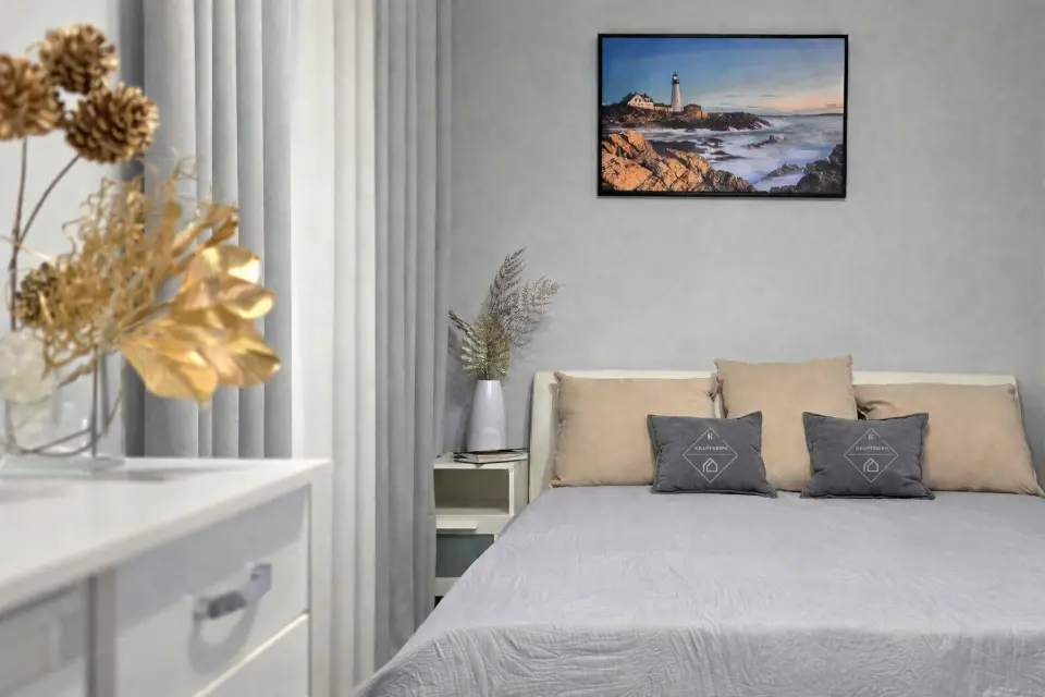 После свежего ремонта в квартире всегда чисто, светло и по-домашнему уютно. Мы постарались создать пространство, в котором приятно отдыхать после прогулок и насыщенного дня в городе. Невероятный вид из окна на бухту Золотой Рог.