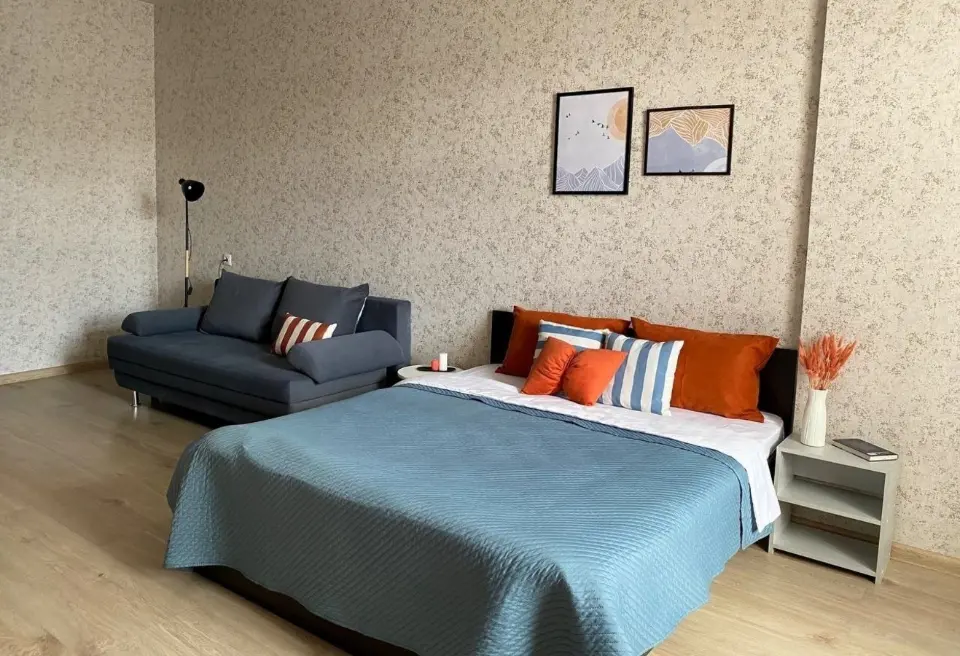 - Просторная спальня с двуспальной кроватью и раскладным диваном