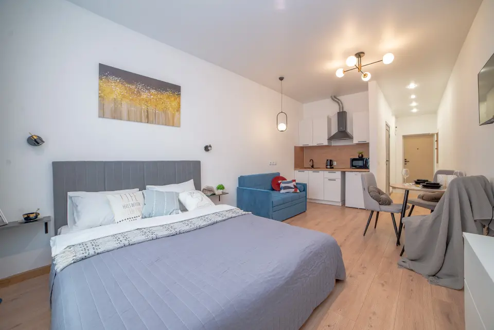 * Вместимость: до 4 гостей (двуспальная кровать + раскладной диван)
