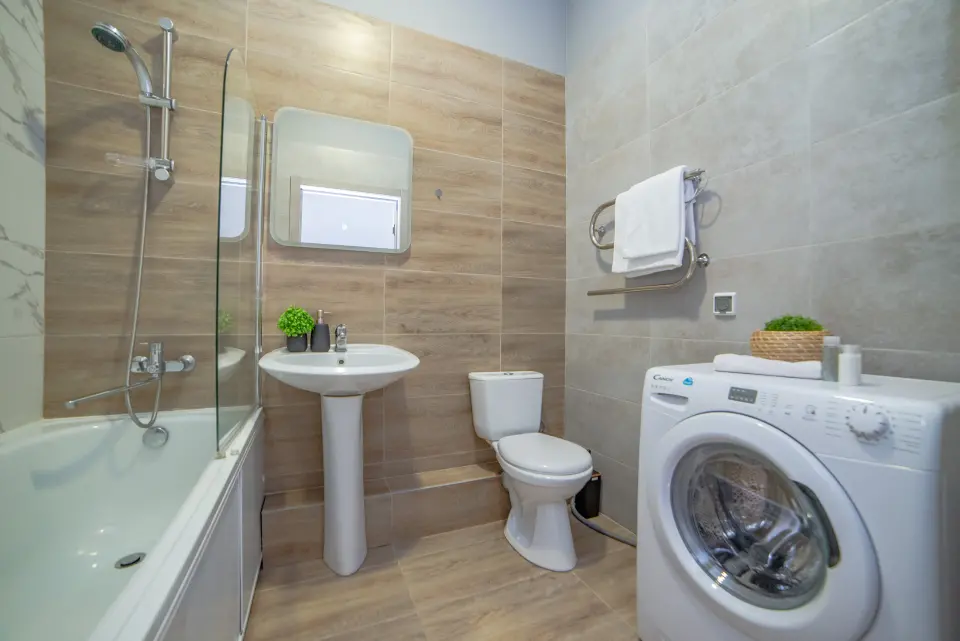 * Полноценная кухня (плита, духовка, микроволновка, чайник)