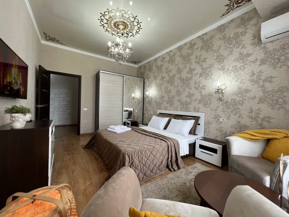 Квартира находится на пятом этаже восьмиэтажного дома. Лифт Otis.Общая площадь квартиры 60 кв.м-большой зал с спальным гарнитуром.-просторная кухня с удобным раскладным диваном.