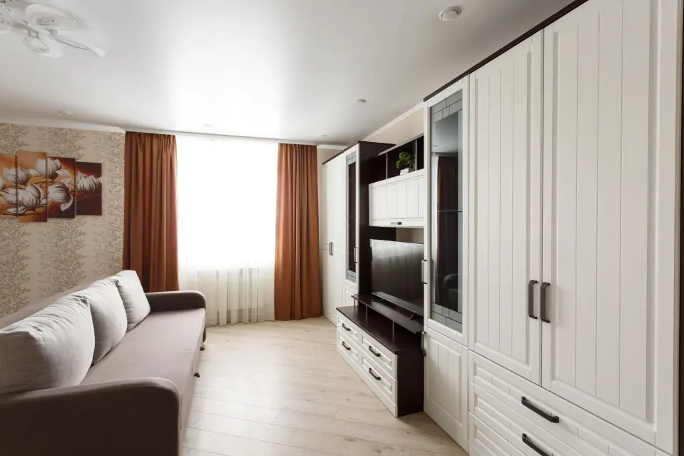 Первое, что бросается в глаза, это просторный светлый диван — настоящий друг для вечерних фильмов и утреннего лентяйства. Диван настолько удобный, что, возможно, он затянет вас в плен сна, и вы проспите все экскурсии!