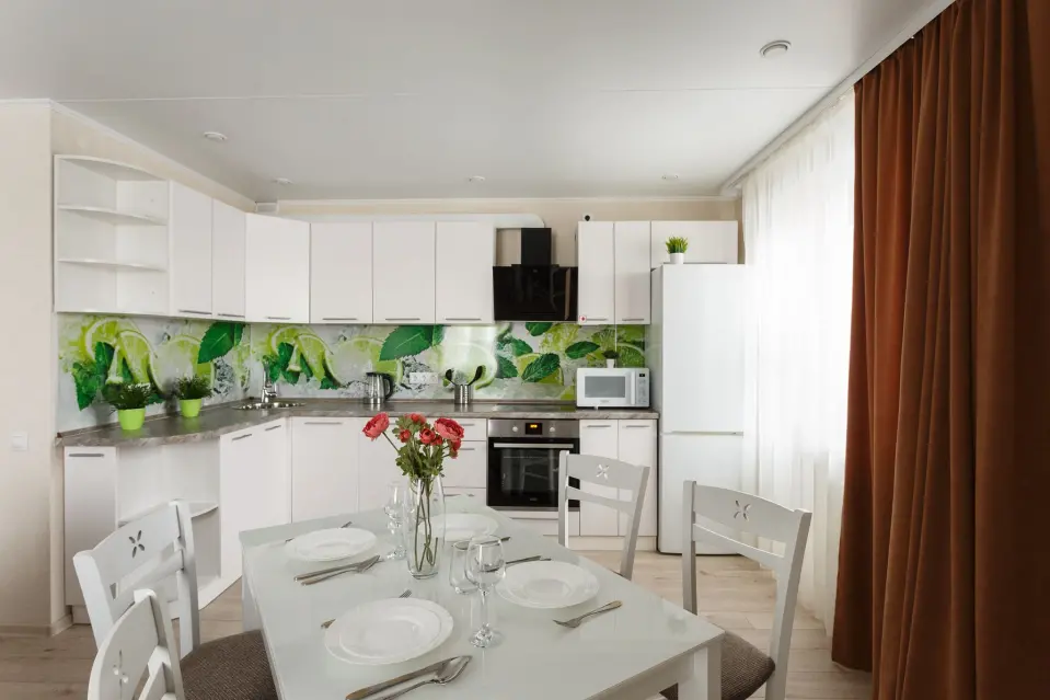 А теперь взгляните на кухню — место, где кулинарные шедевры случаются сами собой (ну, почти). Здесь холодильник ждет, когда его наполнят запасами вкусняшек, а духовка готова к приключениям с воскресными пирогами.