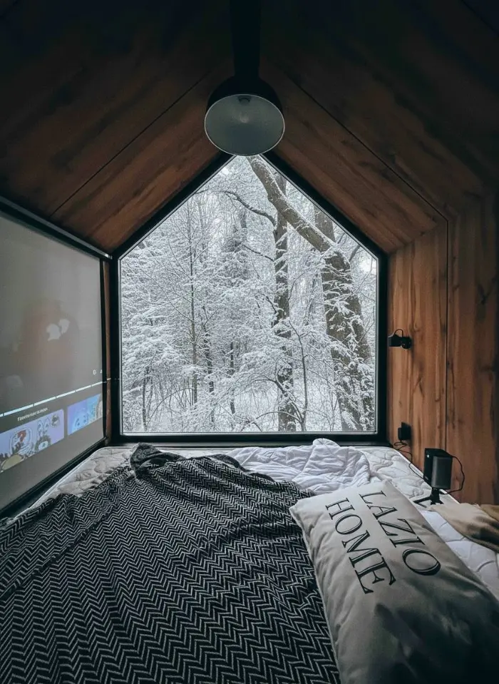 Дом-малыш притаился на краю оврага с панорамным видом в чащу леса. Уникальная возможность совершить настоящий побег из города для романтиков, мечтающих проснуться в лесу.