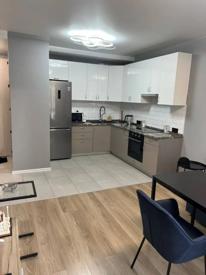 - Полноценная кухня (индукционная плита, духовка, холодильник, микроволновка, чайник)
