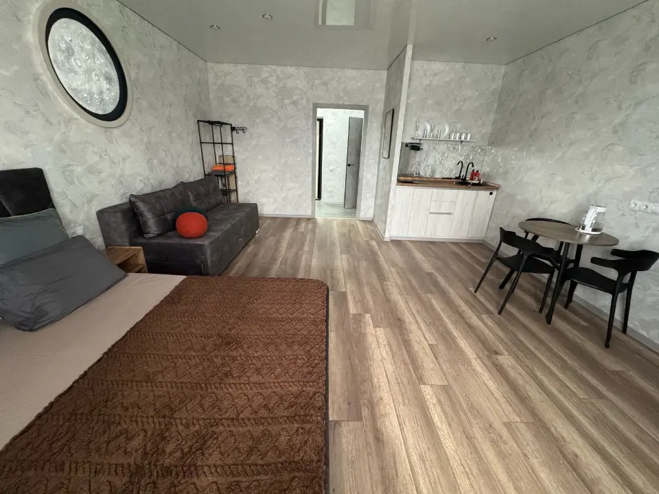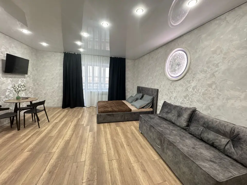 Новостройка .Отличная студия в хорошем районе города: 2 спальных раздельных места + Двуспальная кровать + диван .