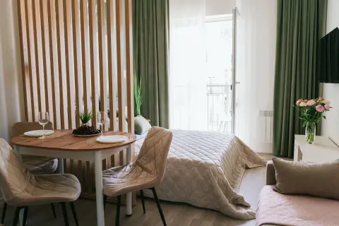 ✔ Простор для семьи или компании — до 4 человек (двуспальная кровать + диван-кровать).