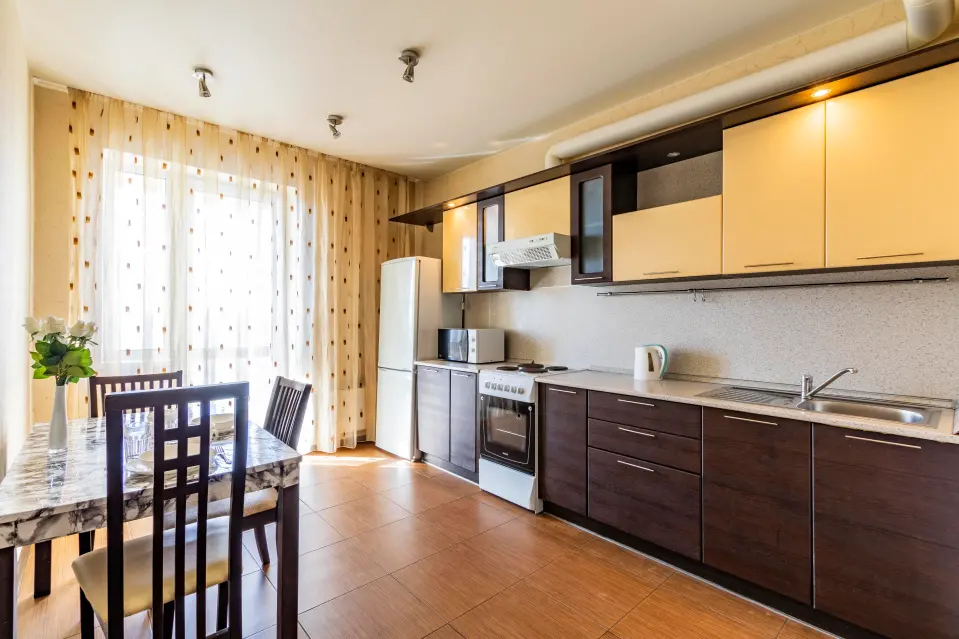 * Полноценная кухня (варочная панель, микроволновка, чайник)