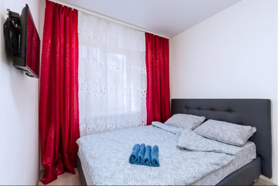 двуспальная кровать с ортопедическим матрасом, при необходимости можно поставить раскладную кровать с матрасом (ИКЕЯ), телевизор, высокоскоростной интернет с бесплатным WiFi, кабельное ТV 160 каналов,