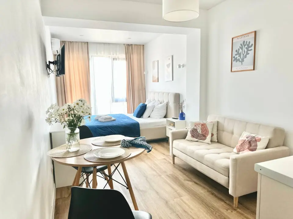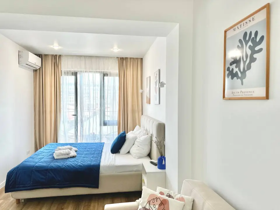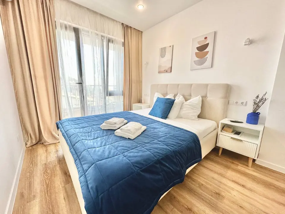 !В апартаменте для вашего удобства есть: Двуспальная кровать, раскладной диван, холодильник, микроволновка, индукционная плита, набор посуды на четыре персоны, стиральная машина, утюг с гладильной доской, полотенца, свежее постельное бельё.