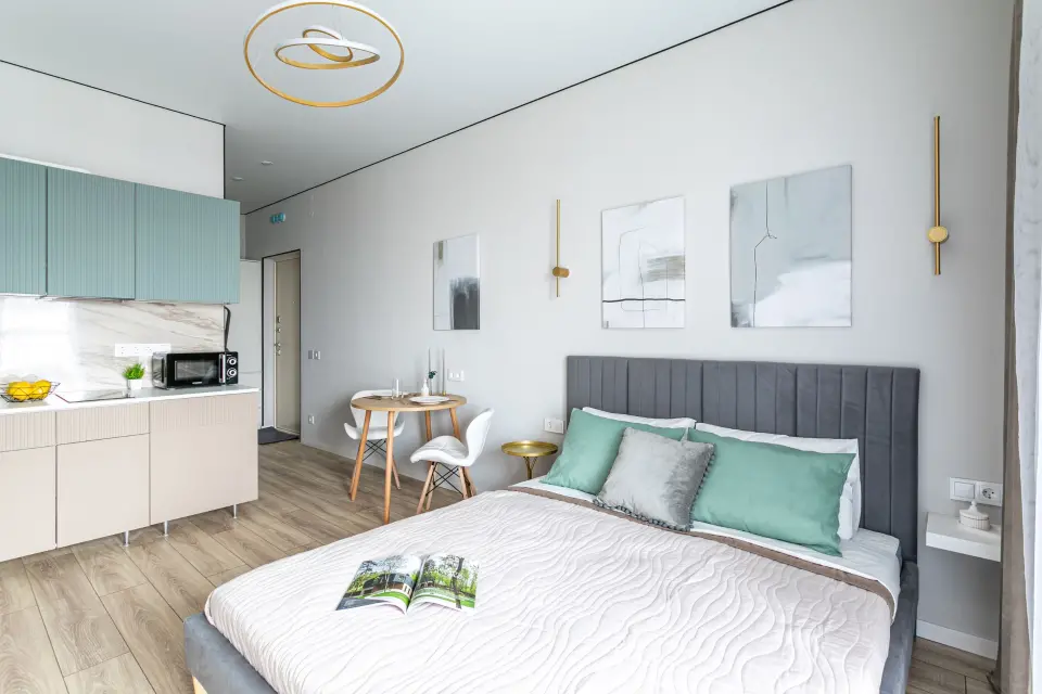 Комфорт и удобства: Для Вас есть всё необходимое для комфортного проживания:Удобная двуспальная кровать с ортопедическим матрасом. Современный ЖК-телевизор для просмотра любимых программ и фильмов. Система для хранения вещей;