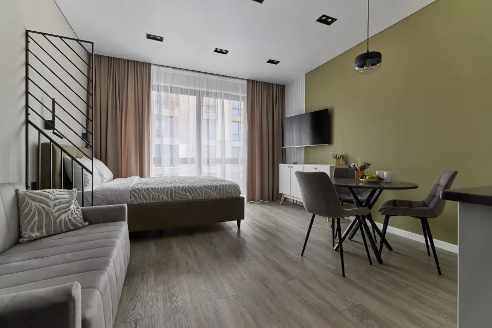 Комфортная студия с панорамными окнами