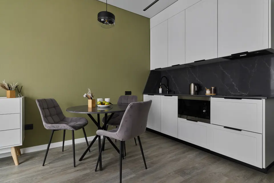✔ Турка для кофе | ✔ Микроволновка | ✔ Холодильник | ✔ Вся необходимая посуда и приборы | ✔ Обеденная зона с мягкими стульями