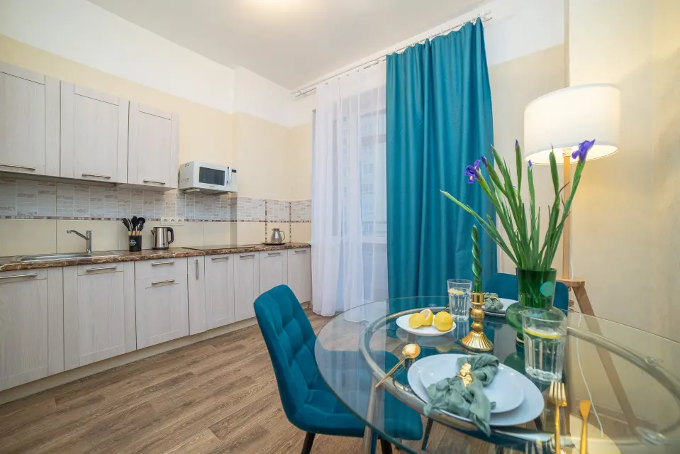 * Полноценная кухня (плита, духовка, микроволновка, чайник)