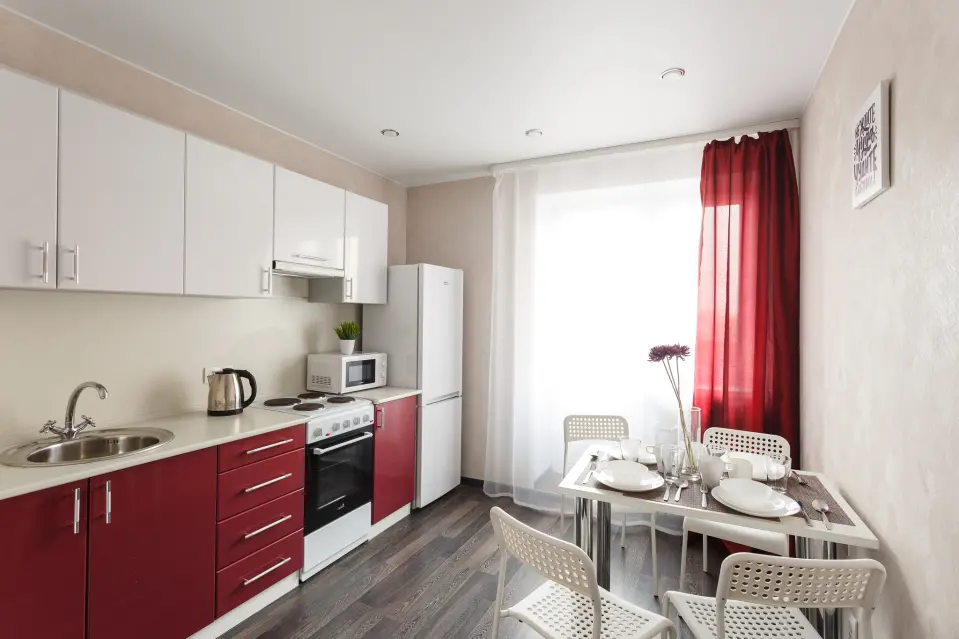 😍 Добро пожаловать в эту чудесную квартиру, где утро начинается с улыбки благодаря красным шторам, которые кажутся красными будильниками!
