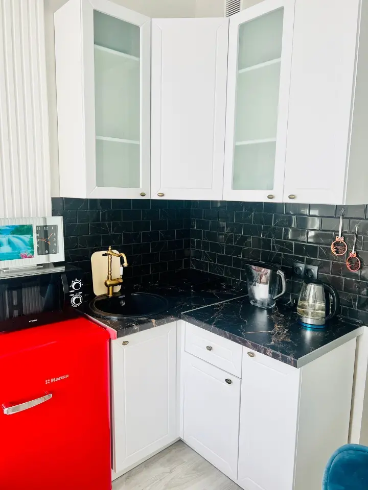 — Кухня оборудована всей необходимой бытовой техникой (плита, холодильник, микроволновка, чайник) и посудой;