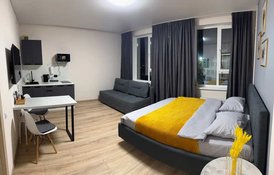 Студия оснащена всем необходимым для комфортного проживания вдали от от дома: