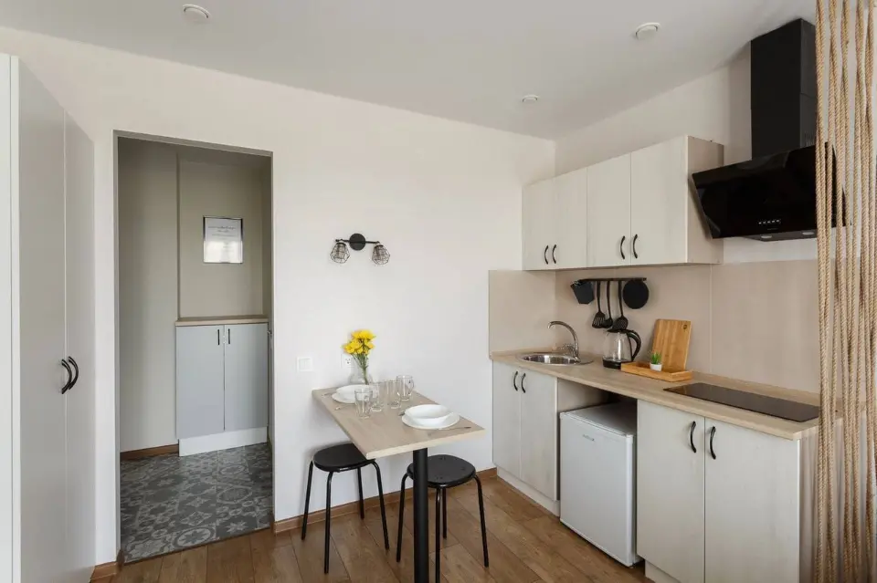 •Оборудованная кухня (холодильник, варочная панель, микроволновая печь, чайник)