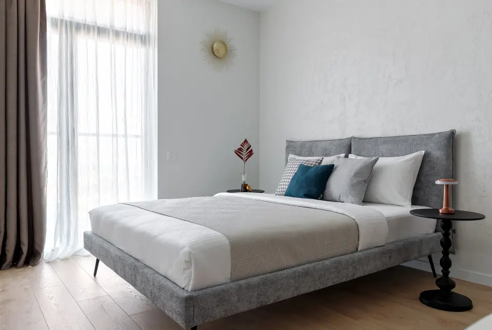 - Спальная зона: Кровать с ортопедическим матрасом, словно облако после долгого перелета.