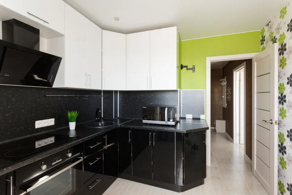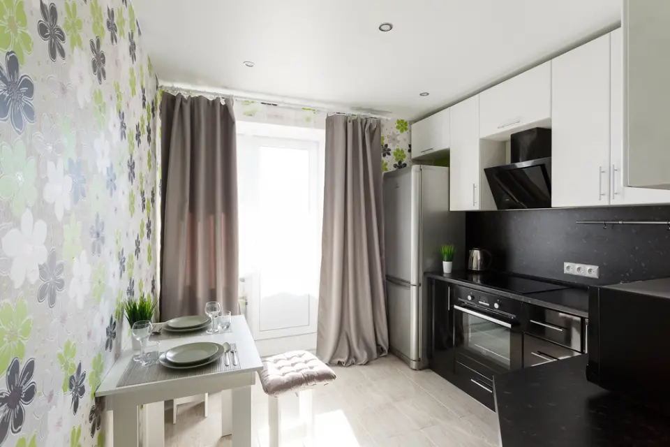 Кухня оборудована всем необходимым для приготовления вкусных блюд: стильные шкафчики, современная плита и духовка помогут почувствовать себя настоящим шеф-поваром. Маленький, но уютный обеденный стол станет идеальным местом для семейных ужинов или романтических завтраков.