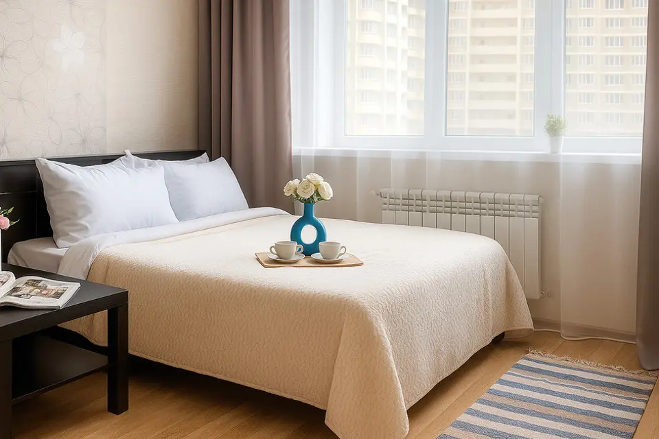 Скидки при бронировании от 3-х суток, скидка лояльности постоянным гостям. Заселение круглосуточное с 14.00. Без залога через сервис заселения. Бесплатно чай/кофе, индивидуальный зубной набор, гель для душа, шампунь.