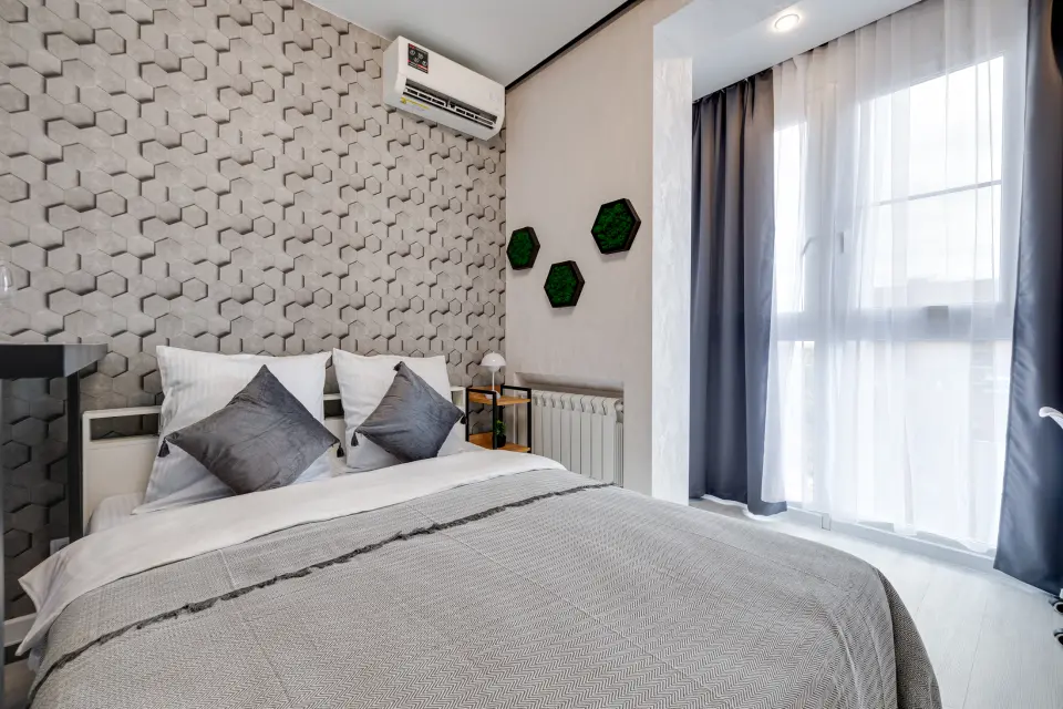 • Просторная двуспальная кровать с ортопедическим матрасом с мягким постельным бельем 1-2 гостей.