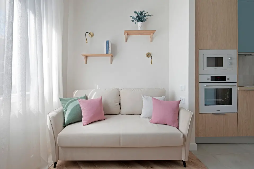 - Полноценная спальня с кроватью 160 на 200 и ортопедическим матрасом. ➕В кухне-гостиной раскладной диван-кровать, спальное место 140 на 200.
