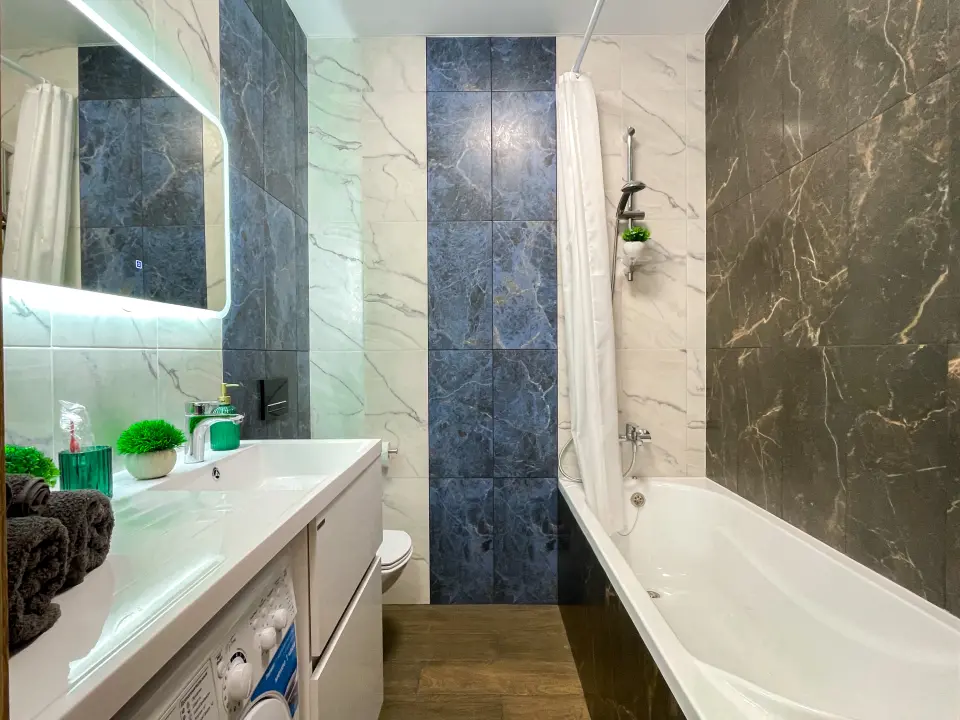 - В квартире имеется все необходимое для комфортного проживания (стиральная машина, электрический чайник, холодильник, электроплита)