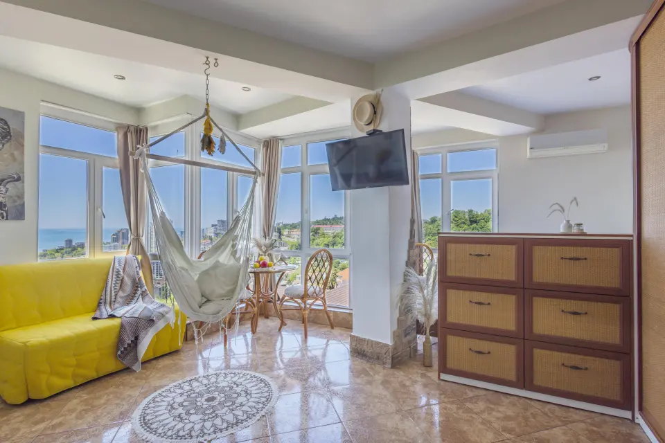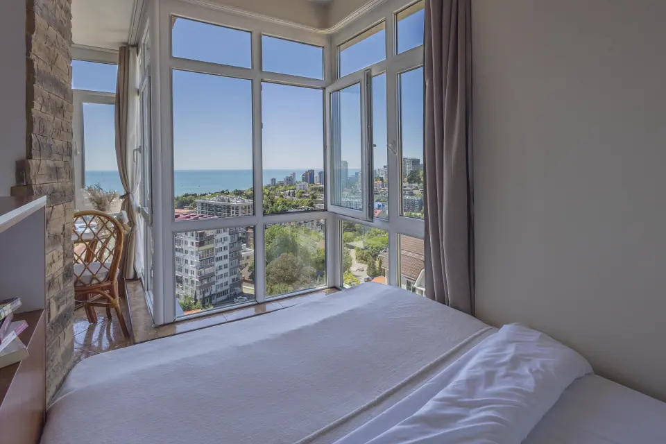 Проведите незабываемые дни в светлой, уютной квартире с панорамным видом на морской горизонт. Каждое утро здесь начинается с вдохновения, а вечер — с потрясающего заката прямо из окна.