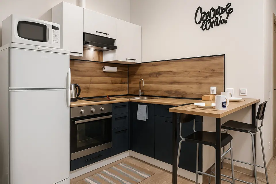 🍲 Полноценно оборудованная кухня с посудой и аксессуарами для готовки.