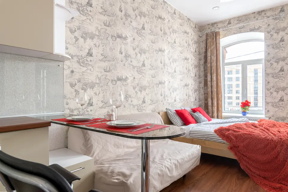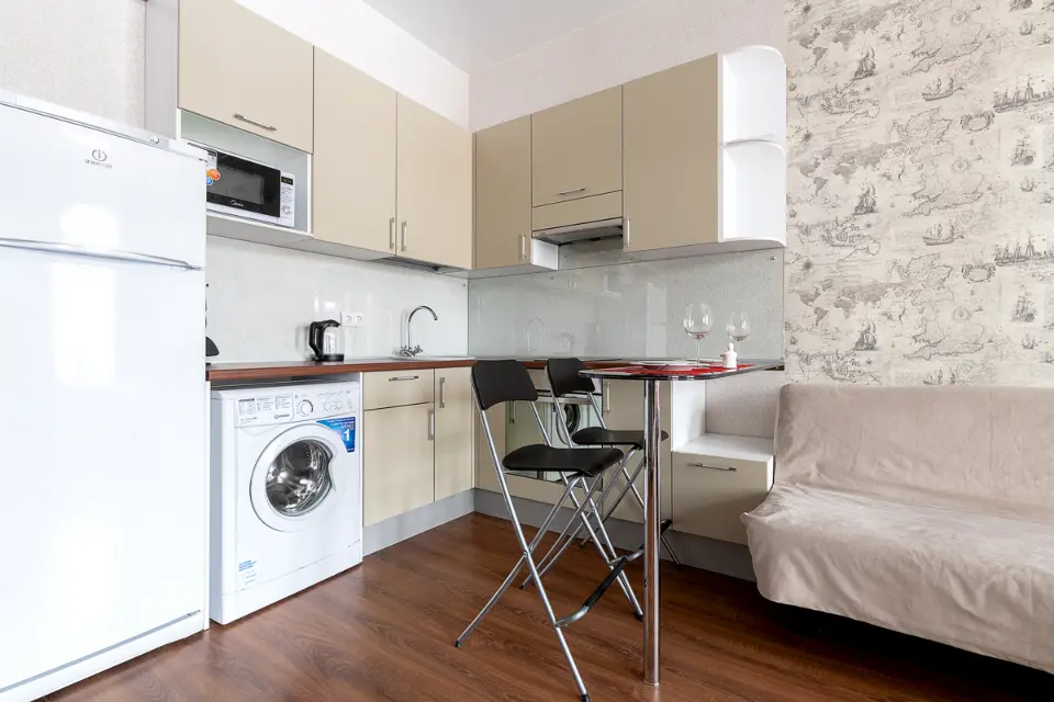 Стильная и современная квартира-студия в которой есть все необходимое как для краткосрочного, так и для длительного проживания 4х гостей.