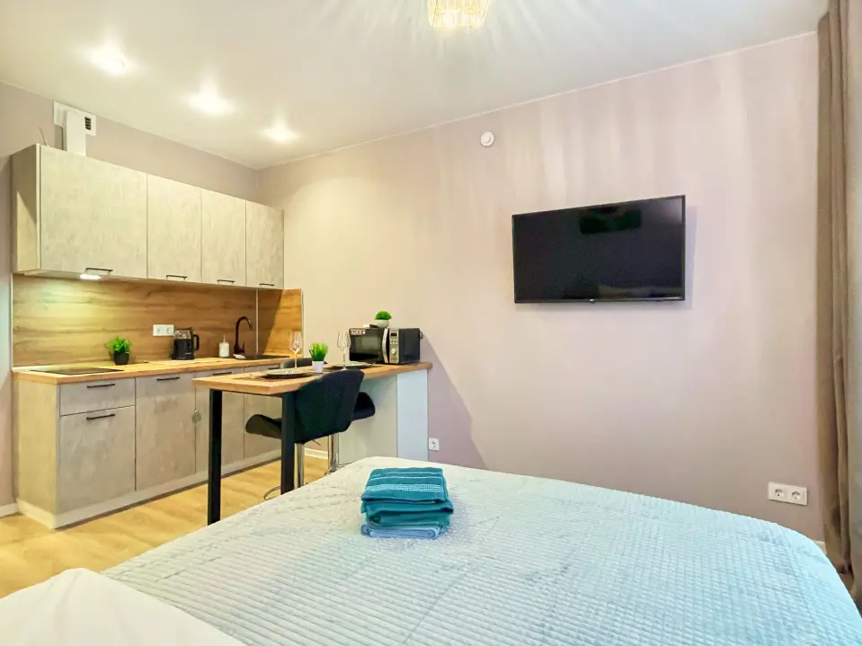 Предлагаем вашему вниманию светлую и современную студию для комфортного проживания на короткий срок в современном жилом комплексе. Она идеально подойдет для пар, друзей или деловых путешественников, ценящих уют и удобство!