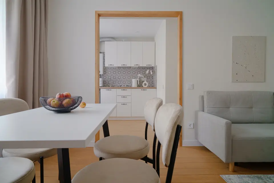 🏡 Откройте для себя стильную и уютную квартиру, созданную для вашего комфортного отдыха и уединения от городской суеты. Нейтральная палитра и панорамные окна наполняют пространство гармонией и светом. В спальне вас ждет роскошная двуспальная кровать, а гостиная восхищает изяществом, современным телевизором и элегантной мебелью. Мини-кухня с лаконичным дизайном идеально подходит для приготовления изысканных блюд. Каждая деталь интерьера продумана для вашего удобства и удовольствия.