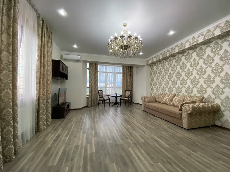 Квартира находится на 6 этаже 8-этажного дома Лифт Otis.Общая площадь - 110 м2.- большой зал с раскладным двуспальным диваном, гарнитуром, спальня комната (кровать шириной 180 см)- просторная кухня с удобным раскладным диваном