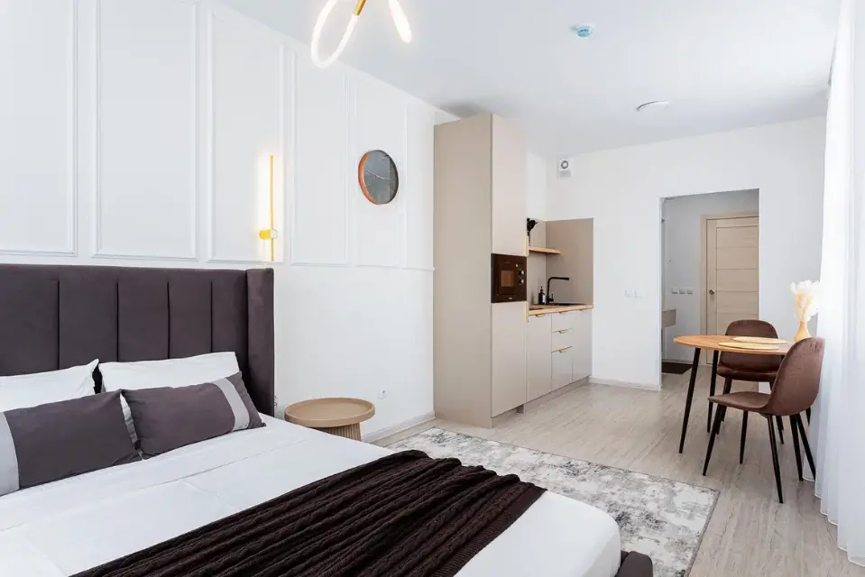 • 🛏 Белоснежные полотенца и постельное бельё премиум-качества, свежие после каждой уборки.
