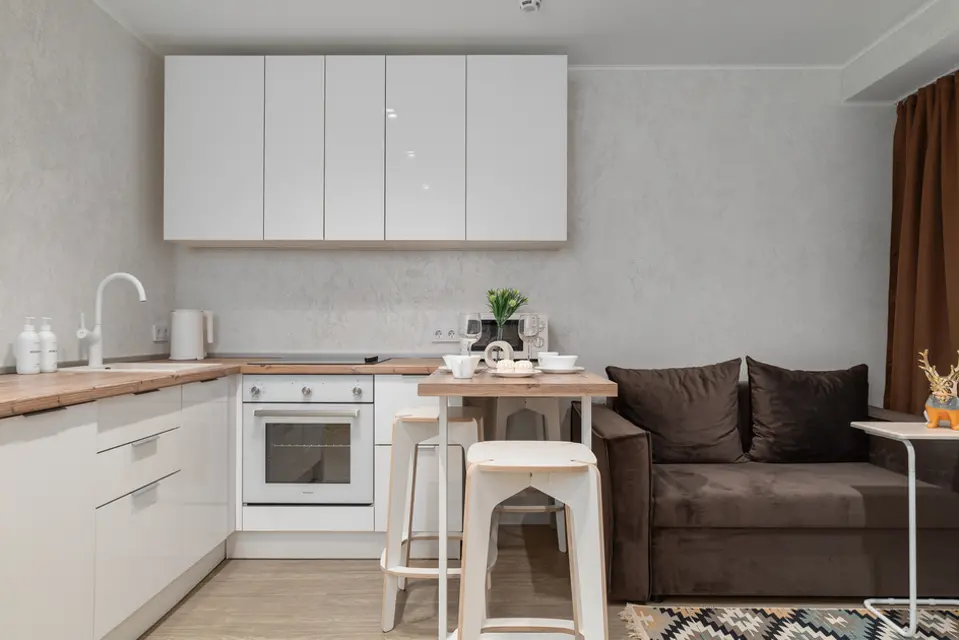 ❒ Укомплектованная техникой и посудой кухонная зона