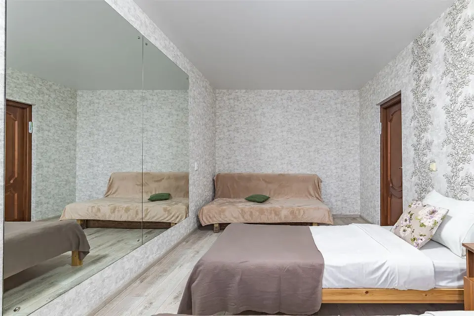 ДВУСПАЛЬНАЯ КРОВАТЬ + 2 ОДНОСПАЛЬНЫЕ КРОВАТИ + 2 РАСКЛАДНЫХ ДИВАНА ✨ ДО 8 ГОСТЕЙ ✔️Большая квартира с 2 спальнями и лоджией рядом с озером. Расположена в живописном районе с хорошо развитой инфраструктурой. В пешей доступности магазины, кафе, аптеки, обустроенная прогулочная пешеходная зона у озера. ✔️Идеально подходит как для небольших поездок, так и для длительных командировок. Почему этот вариант от компании "Стрелка - гостевые квартиры" лучший для Вас⭐: ✅ Самостоятельное заселение/выезд в удобное для Вас время (установлен электронный замок); ✅ Кухня с плитой, духовкой, холодильником, чайником и микроволновкой; ✅ Посуда и кухонные принадлежности для приготовления и приема пищи; ✅ 2 телевизора, Wi-Fi; ✅ Лоджия; ✅ Чистое и отглаженное постельное белье и полотенца из собственной прачечной для каждого гостя; ✅ Фен, мыло, шампунь, гель для душа; ✅ Стиральная машина, а также все для стирки и глажки белья; ✅Бесплатная парковка во дворе. Платная парковка в пешей доступности; ✅ Хорошая транспортная доступность в любую часть города до любого предприятия и к достопримечательностям. Отличный вариант для комфортного пребывания в городе! ✅ У нас высокие стандарты уборки! Гарантируем чистоту и порядок. При длительном проживании промежуточные уборки и замена постельного белья и полотенец. ★Предоставляем полный пакет отчетных документов. ★Работаем с юридическими лицами и организациями. ★Оплата любым удобным способом. ПРАВИЛА ПРОЖИВАНИЯ: ✨При регистрации необходимо предоставить паспорт и подписать электронный договор. ✨Время заезда после 14:00, выезда до 11:00. Ранний заезд и поздний выезд возможен по предварительному согласованию ✨Перед заездом в квартиру взимается залог, возвращается в день выезда по результатам проверки квартиры и при условии соблюдения правил проживания ⛔Курение, в том числе электронных сигарет и кальяна, в помещении запрещено! ⛔Только для тихого проживания, мероприятия, вечеринки и громкие посиделки запрещены! ⭐Подapитe ceбe комфортный oтдыx со вcеми удобcтвaми в Апaртамeнтаx "Стрелка"!⭐ ▸200 метров до продуктового магазина "Пятерочка" ▸400 метров до продуктовых магазинов "ВкусВилл", "Перекресток" "Красное и Белое"; ▸2 км до ТРЦ "Седьмое небо" (магазины, большой супермаркет "Ашан", кафе, кинотеатр, фудкорт) (20 мин пешком или 3 остановки на маршрутном такси) ▸2,5 км до Футбольного Стадиона, Стрелки (слияния Оки и Волги), Пакгаузов и Собора Александра Невского; ▸ 2 остановки на метро до исторического центра города или 20 минут на авто; ▸7 км до Сормовского парка и Зоопарка Лимпопо (20 минут на авто); ▸ 10 км до ТЦ «Океанис», Аквапарка и парка Швейцария (20 мин на авто); ▸ 10 мин на авто от ЖД вокзала; ✈️ От аэропорта Стригино – 40 минут.