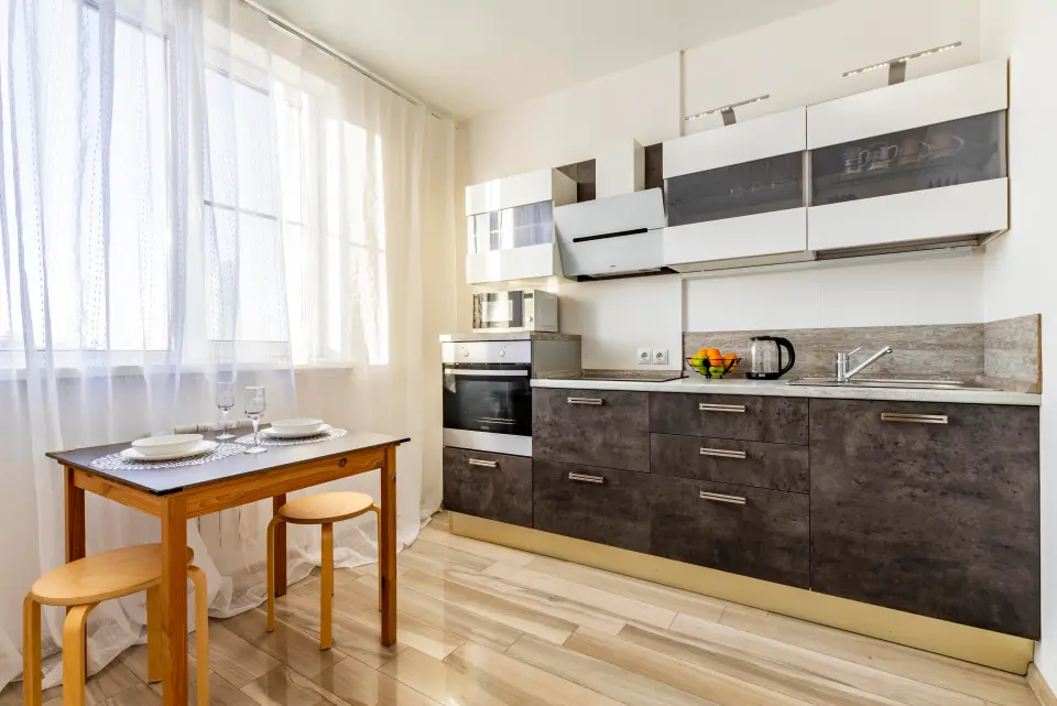 * Полноценная кухня (варочная панель, микроволновка, чайник)