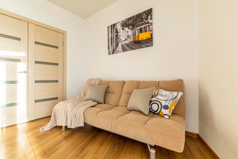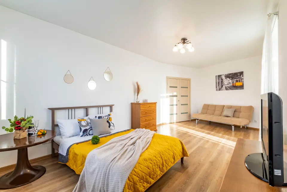 * Вместимость: до 4 гостей (двуспальная кровать + раскладной диван)