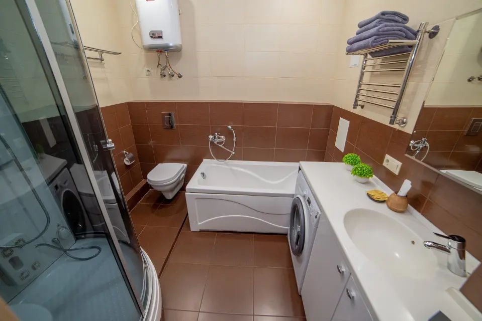 * Полноценная кухня (плита, духовка, микроволновка, чайник)