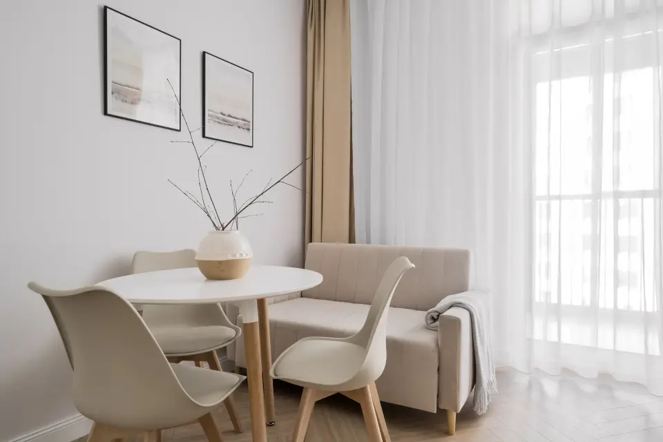 Полностью оборудованный кухонный гарнитур с плитой, электрическим чайником, микроволновкой и всей необходимой посудой для приготовления. Обеденный стол и стулья;