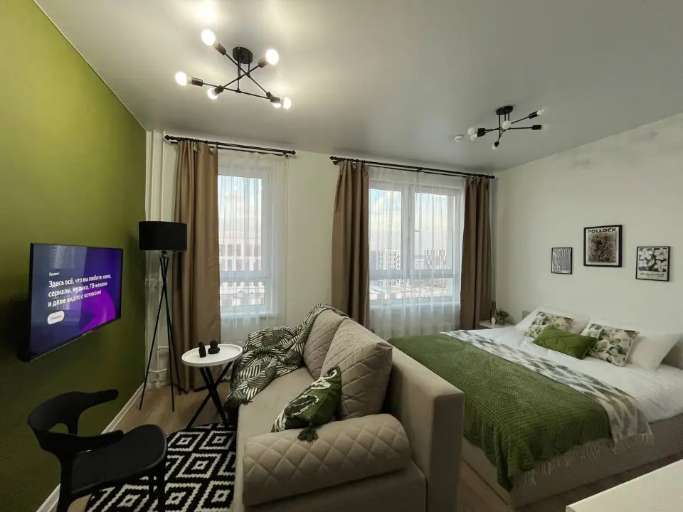 Дизайнерская квартира-студия в спальном районе для 2х гостей — идеальны как для семейного отдыха, так и для командировки.