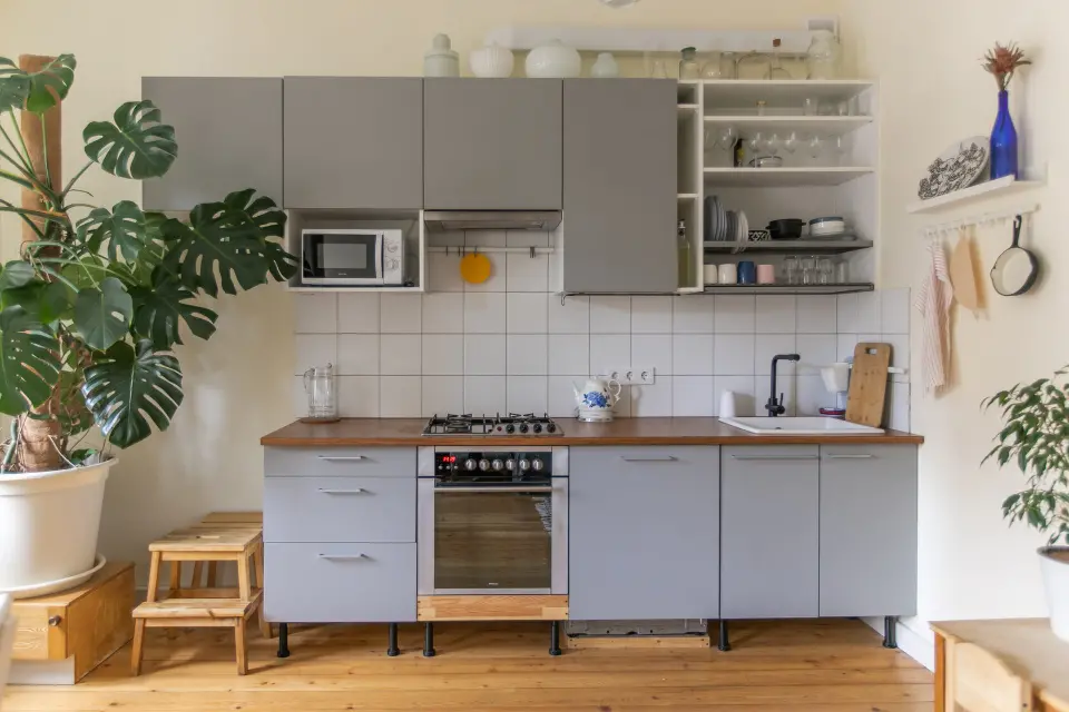 - Полностью укомплектованная кухня, газовая плита, духовка, чайник, микроволновая печь, холодильник, посуда и столовые приборы.