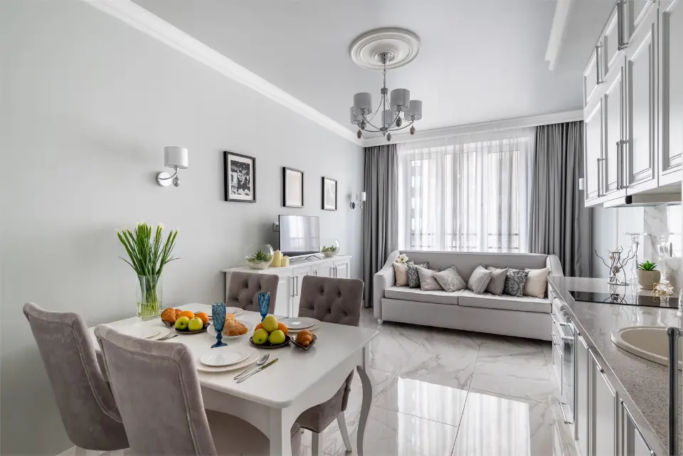 С первых шагов возникает ощущение величия, как будто вы вошли в стильный современный замок, где каждый уголок дышит элегантностью и спокойствием. Здесь воздух пропитан мягким уютом и изысканностью, которые ласково обволакивают, заставляя забыть о суете внешнего мира. Каждая деталь словно шепчет: "Ты дома. Здесь все создано для твоего удовольствия."