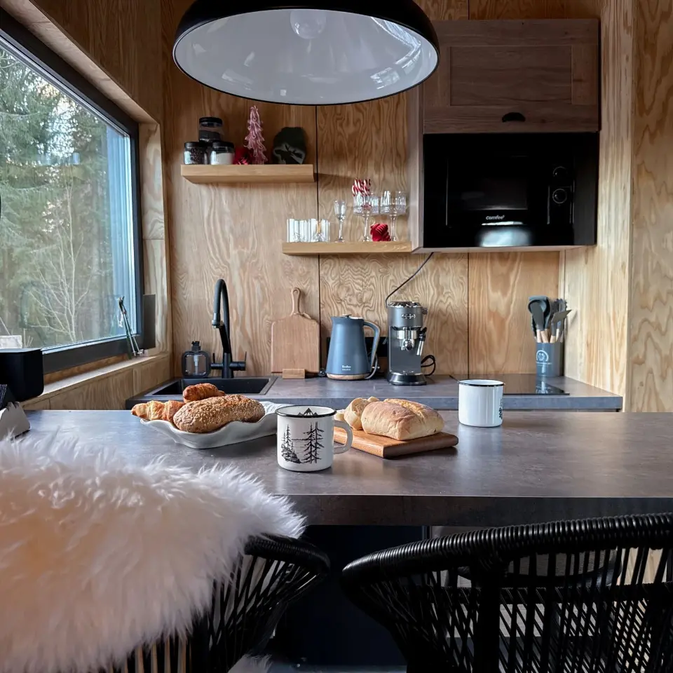 ▪ оборудованная кухня: удобная барная стойка, стулья, холодильник, чайник, тостер, кофемашина, кофемолка, индукционная плита, микроволновка, набор посуды и столовых принадлежностей;