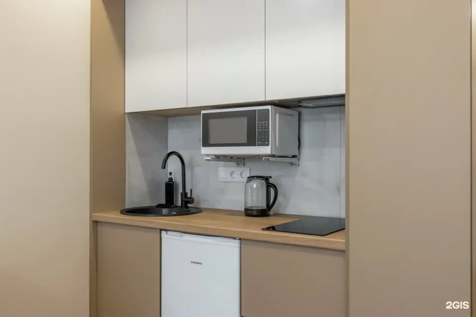К Вашим услугам: чайный сет, сладкий комплимент, питьевая вода, средство для мытья посуды.
