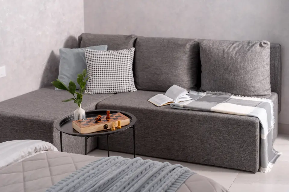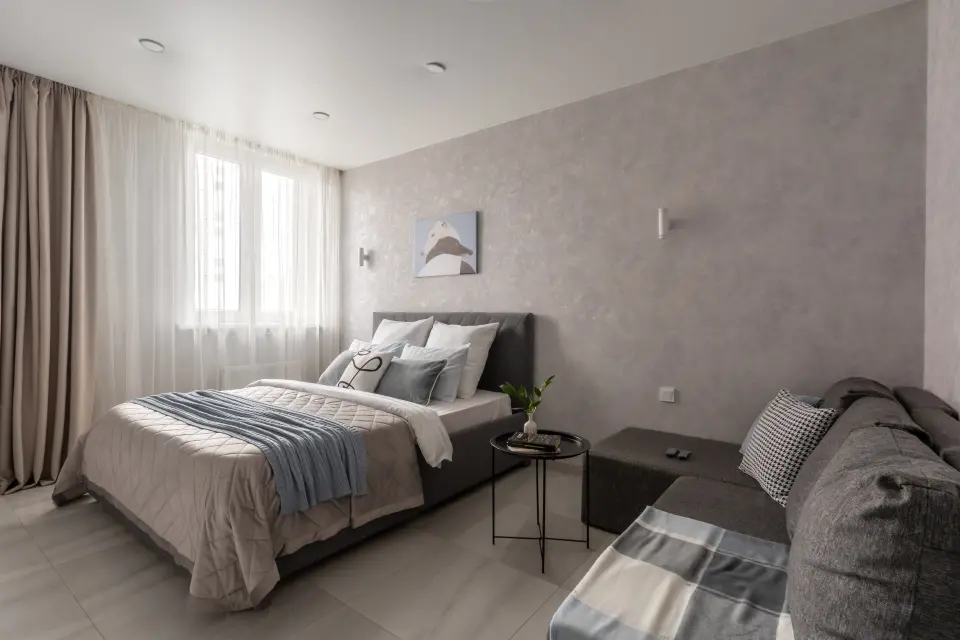 ** В комнате двухместная большая кровать, с удобным матрасом , сделает ваш сон комфортным, двуспальный диван раскладывается в полноценное 2х спальное место.