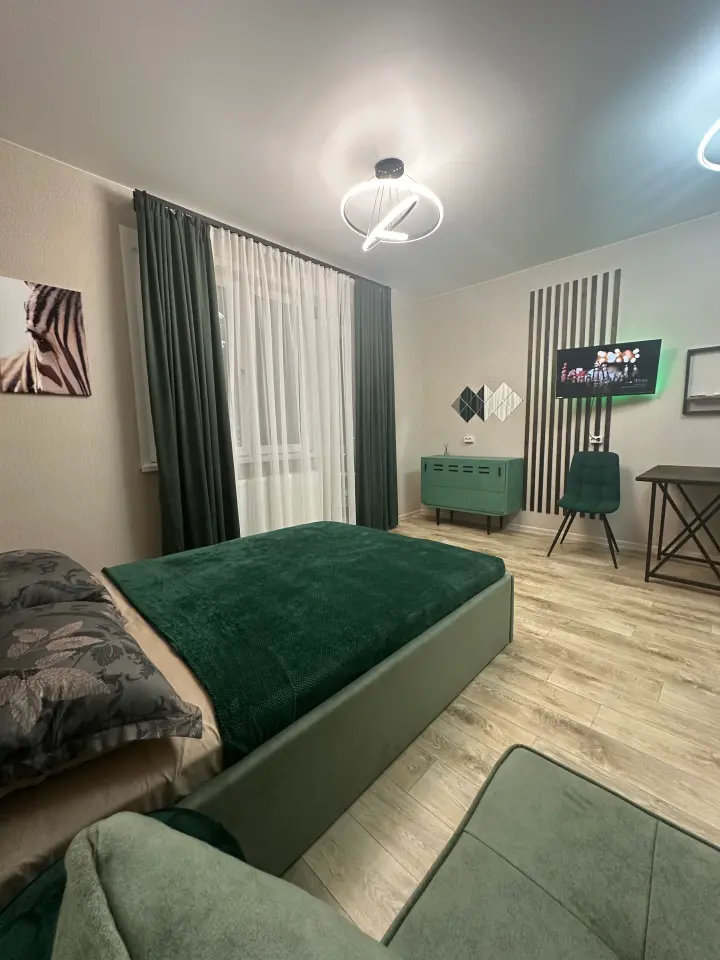 Студия квартира на высоком этаже.2 спальных раздельных места. Двуспальная кровать и диван